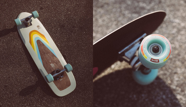Our new Blazers are so hot they’re en fuego! The Blazer Fuego 32 in Horizon is everything there is to love about Globe Blazers with added ride surface area and higher functionality to blaze new territory. This board is 9 wide x 32.5 length and has a 18.5 wheelbase, and is equipped with Tensor ATG (All-Terrain-Geometry) trucks, that turn consistently smooth, and 61mm Dozer 78a cruiser wheels.